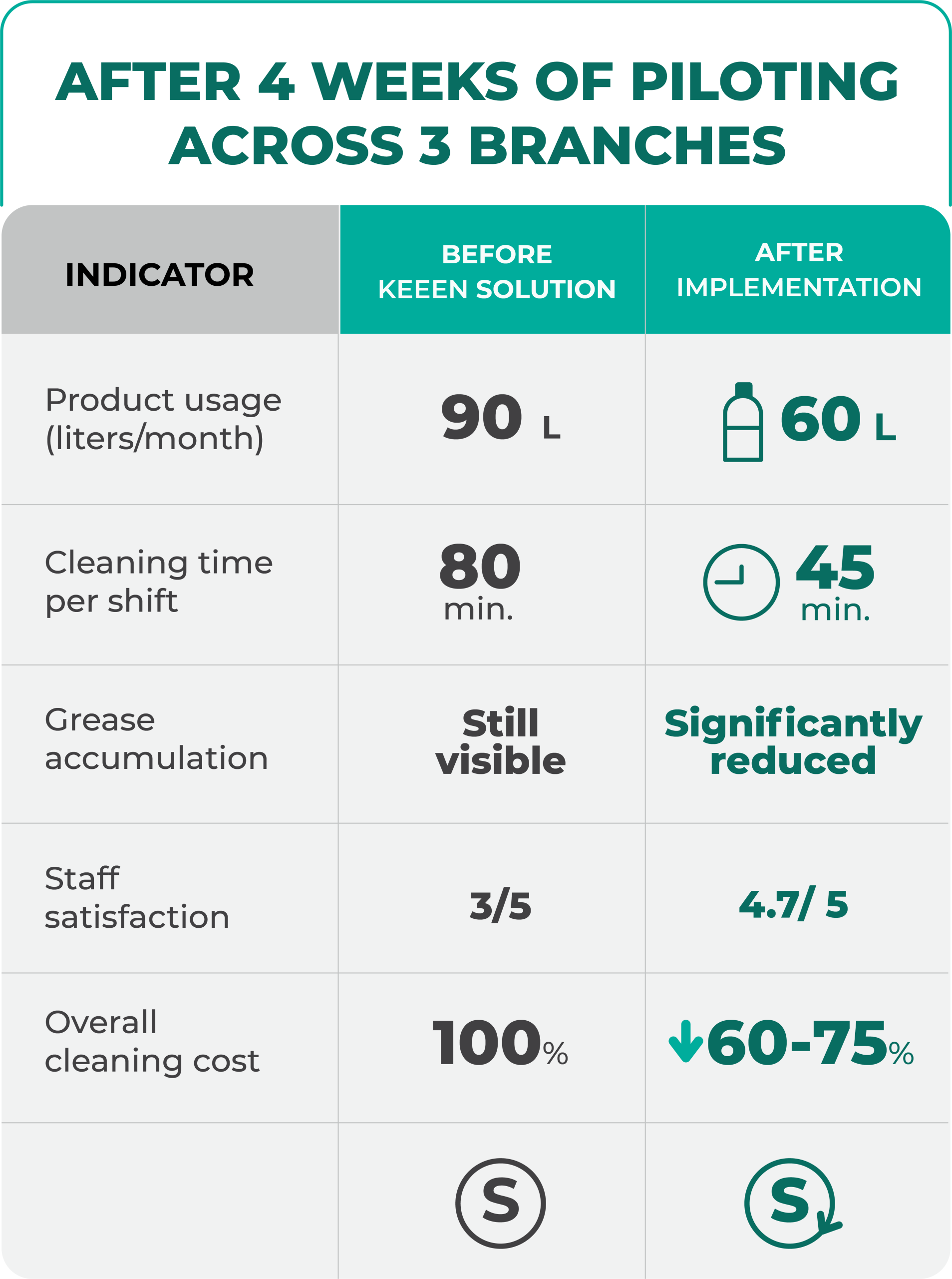 - Inconsistent dilution practices — some branches overused chemical cleaners, leading to increased cost and residue